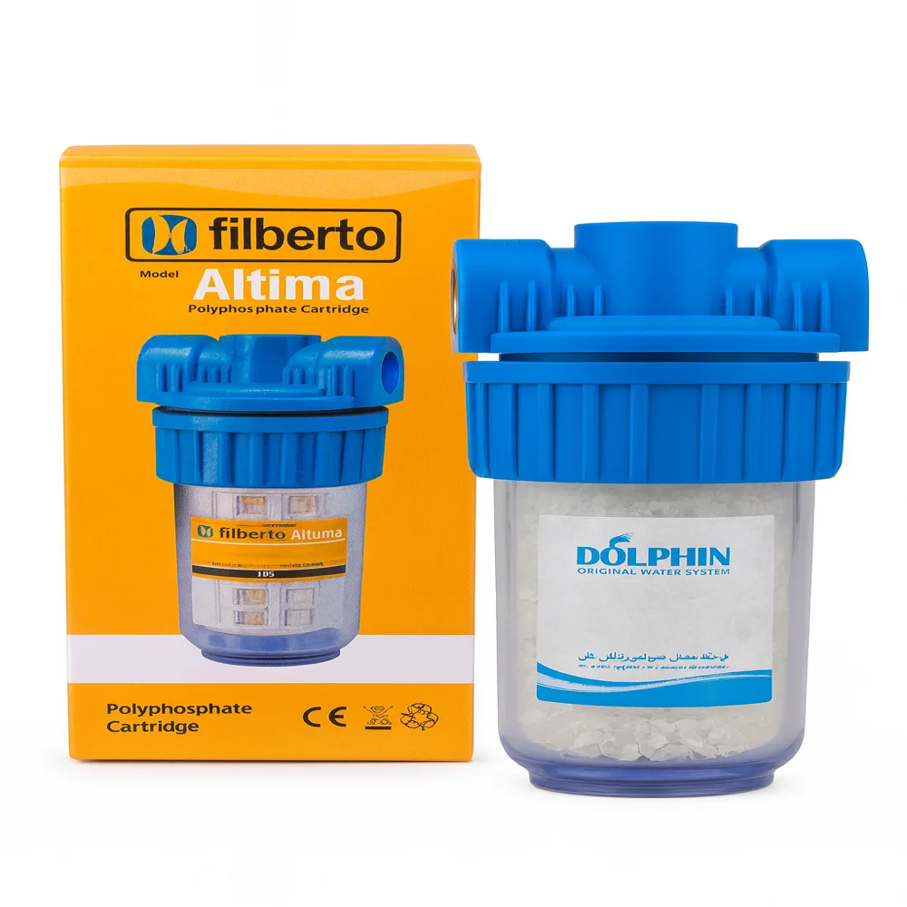 فیلتر پلی فسفات سایز بزرگ دلفین برای پکیجهای دیواری و آبگرمکنهای پرمصرف طراحی شده است.